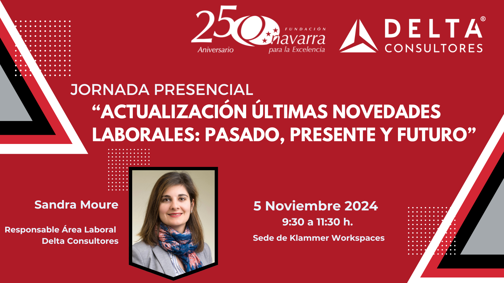 Actualización últimas novedades laborales: Pasado, presente y futuro Jornada práctica con Sandra Moure, Responsable del Área Laboral de Delta Consultores como ponente, en la cual se abordarán las novedades en asuntos laborales de actualidad que afectan a su organización sobre...